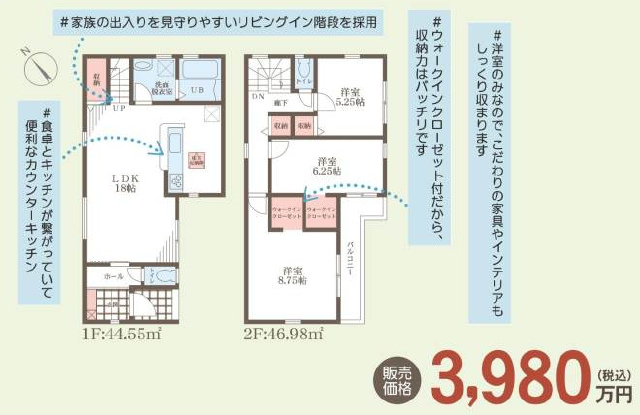 ☆土地建物セット価格4980万円(建物:2180万円 86.22u) ☆閑静な住宅街の全3区画分譲です ☆お好みの間取りをご相談頂けます ※外構工事費用等別途必要です