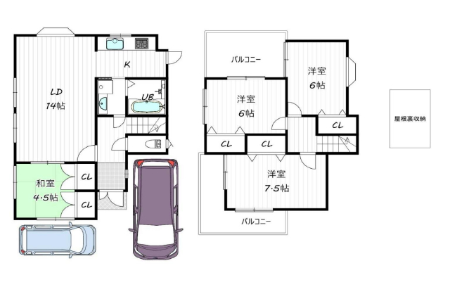 公営水道、公共本下水、駐車場、駐車場2台 |